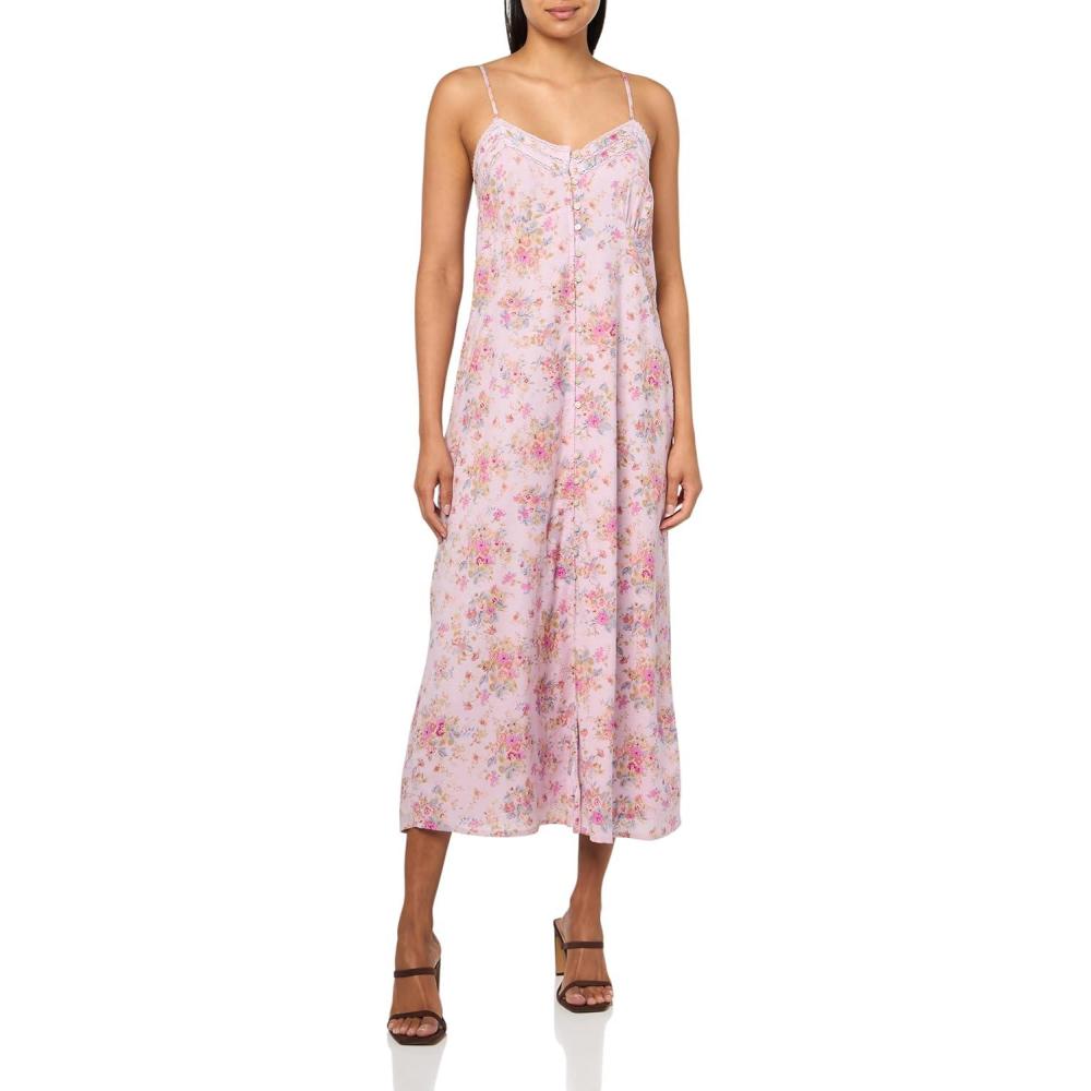 Lucky Brand Women’s Floral Lace Trimmed Slip Dress(Pink Floral)