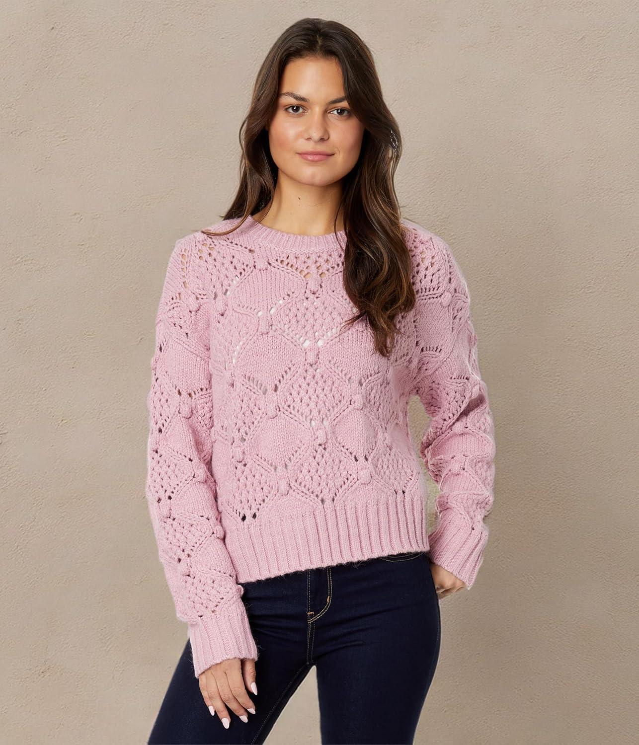Lucky Brand Women’s Open Stitch Pullover Sweater(Lilas)