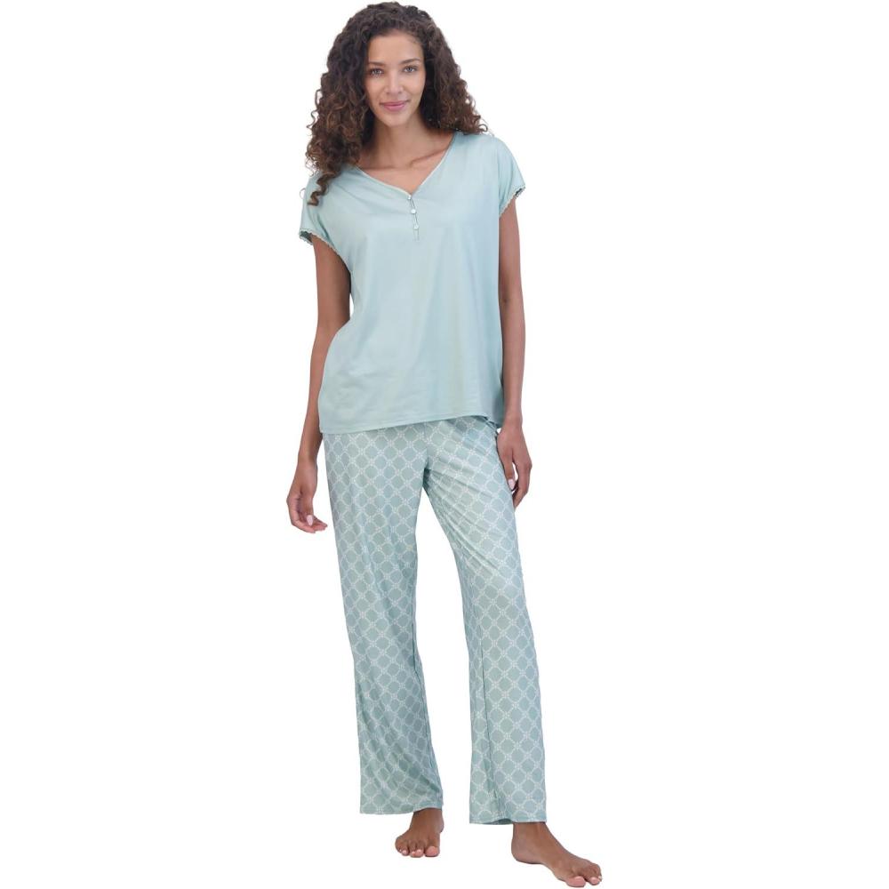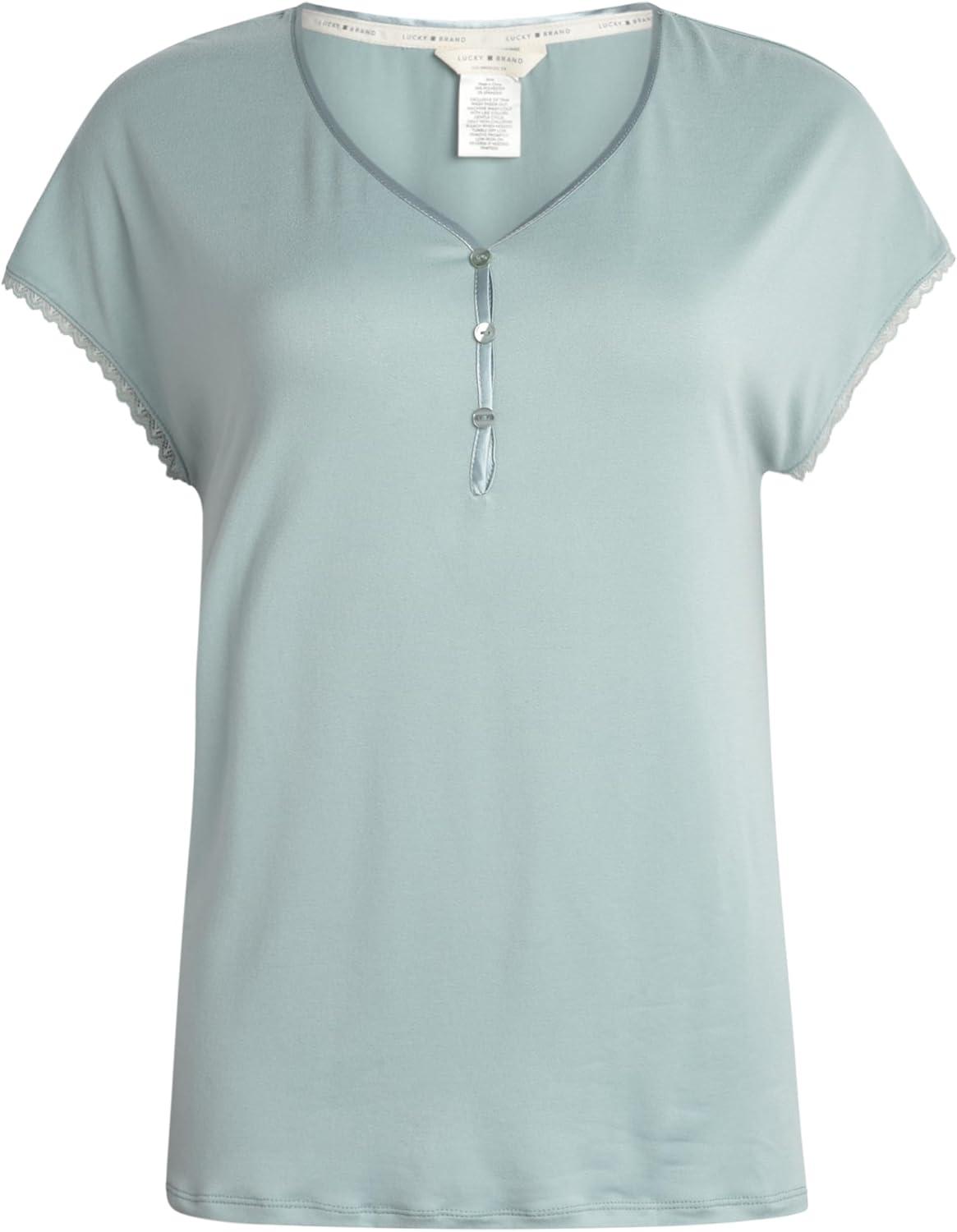 Lucky Brand Women’s Pajama Set – 2 Piece Henley Sleep Shirt and Lounge Pants – Silky Soft Sleepwear for Women(Ether/Line Diamond)