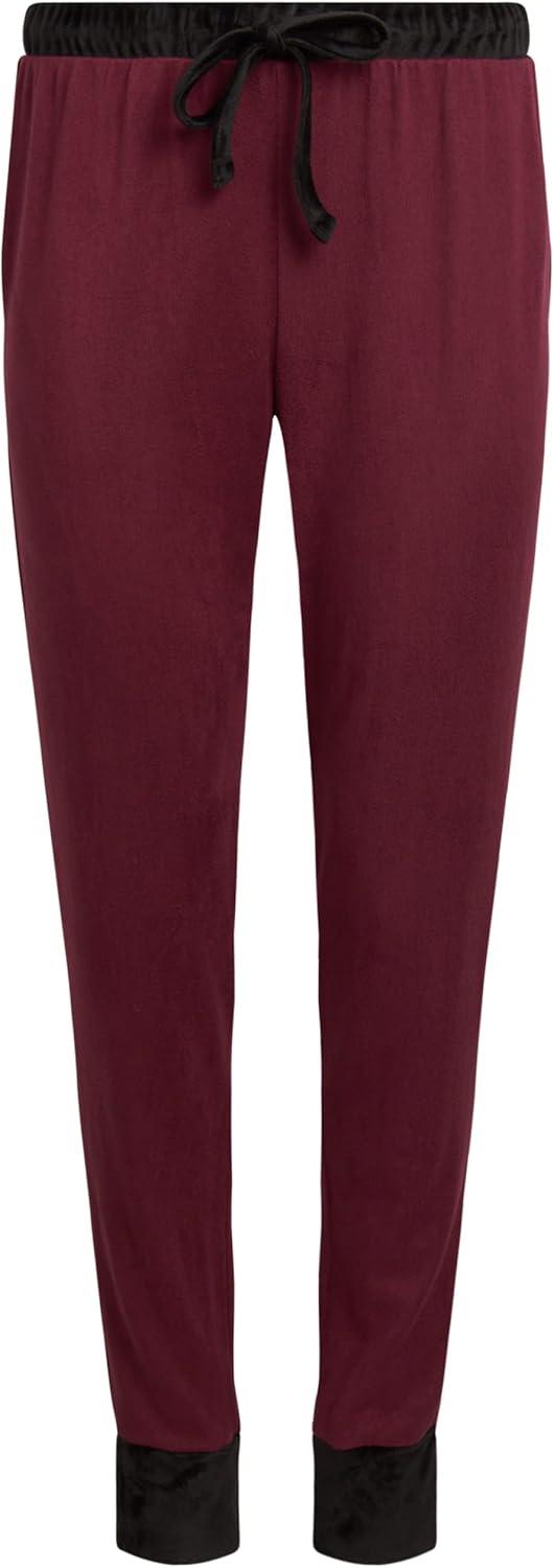 Lucky Brand Women’s Pajama Set – 2 Piece Long Sleeve Sleep Shirt and Jogger Pants with Velour Trim (S-XL)(Maroon Banner)
