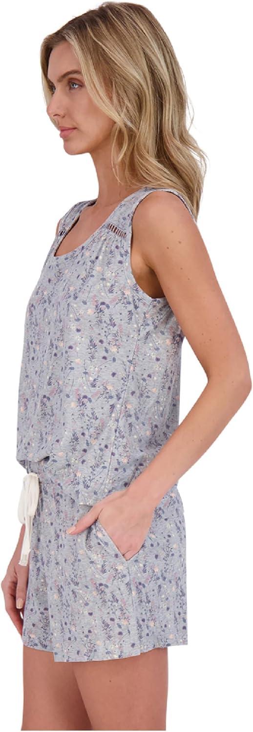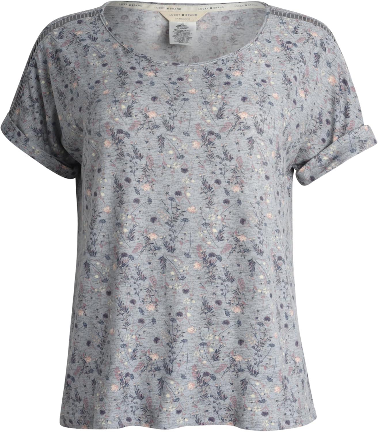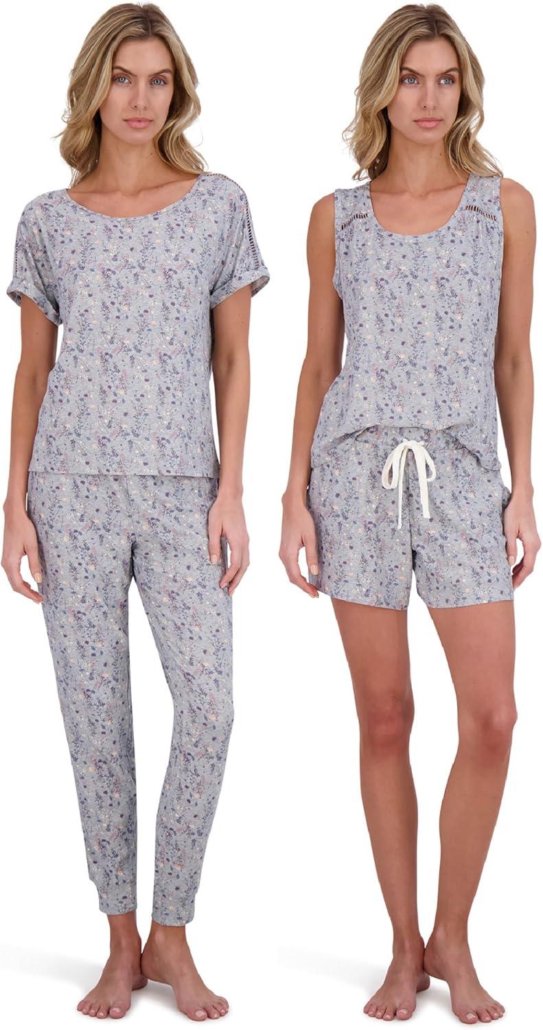 Lucky Brand Women’s Pajama Set – 4 Piece Sleep Shirt, Tank Top, Pajama Pants, Lounge Shorts (S-XL)(Grey Floral)