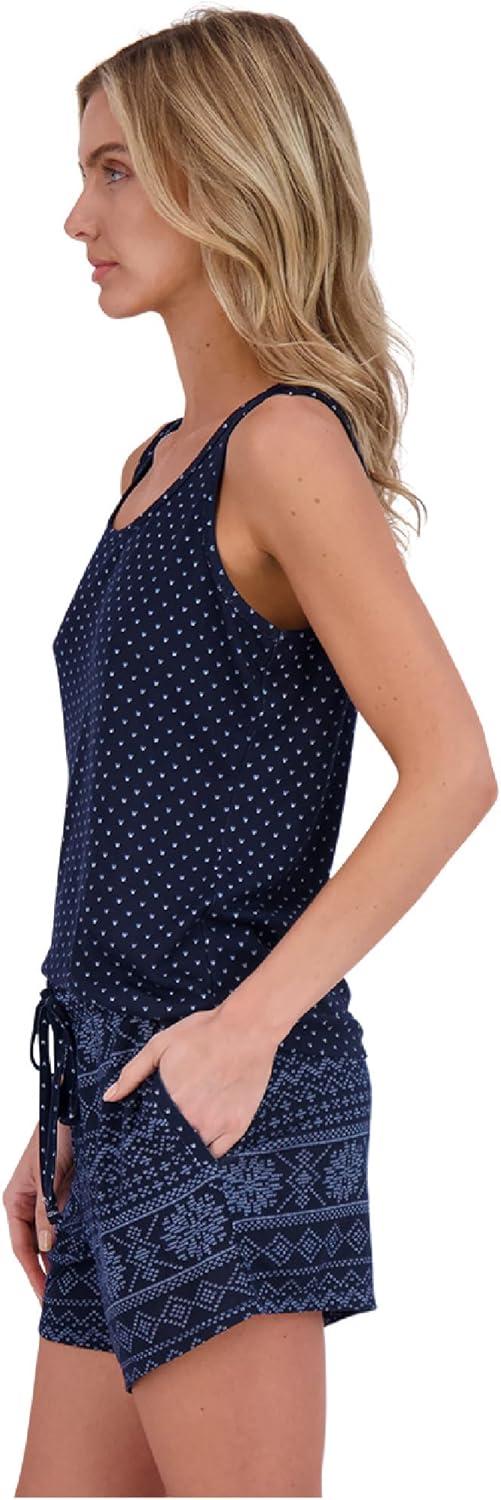Lucky Brand Women’s Pajama Set – 4 Piece Sleep Shirt, Tank Top, Pajama Pants, Lounge Shorts (S-XL)(Navy Bandana)