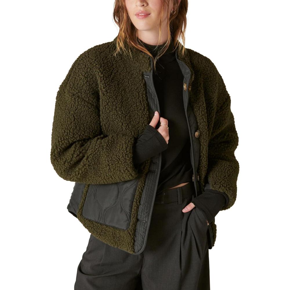 Lucky Brand Women’s Reversible Mixed Media Faux Shearling Jacket(Olive Multi)