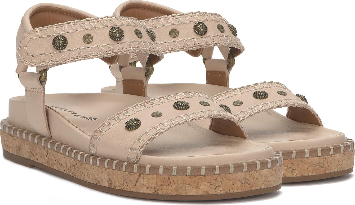Time for your footbed sandal to be more than just comfortable have a flare of fashion. The Ullani from Lucky Brand features a leather footbed, cork outsole, stitching detailing and studded strap upper.