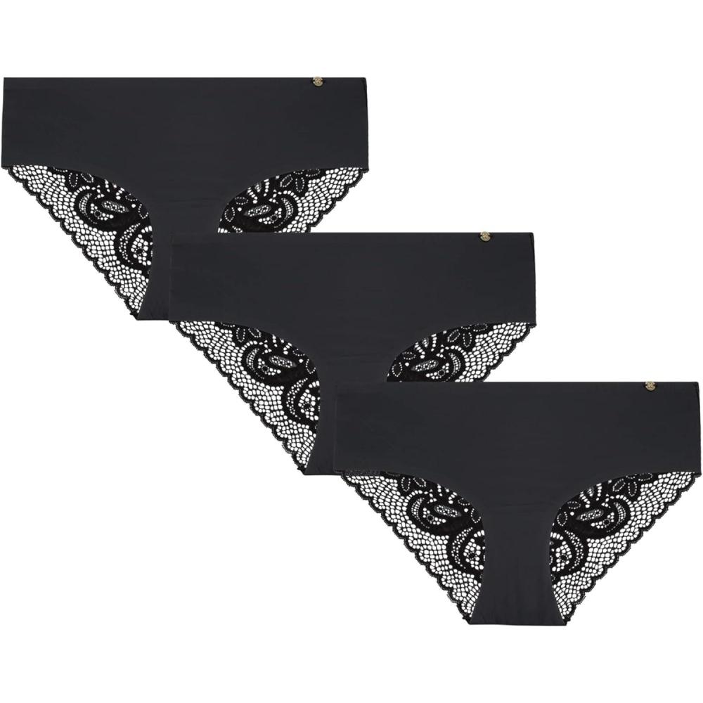 Lucky Brand Women’s Underwear – Microfiber Lace Hipster Briefs (3 Pack)(Black/Black/Black)