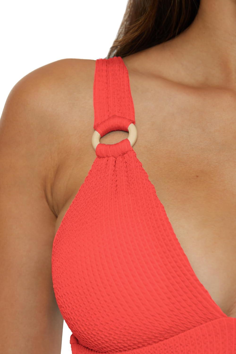 Lucky Brand Women’s Valencia One Piece Swimsuit, Plunge V-Neck, Bathing Suits(Coral)