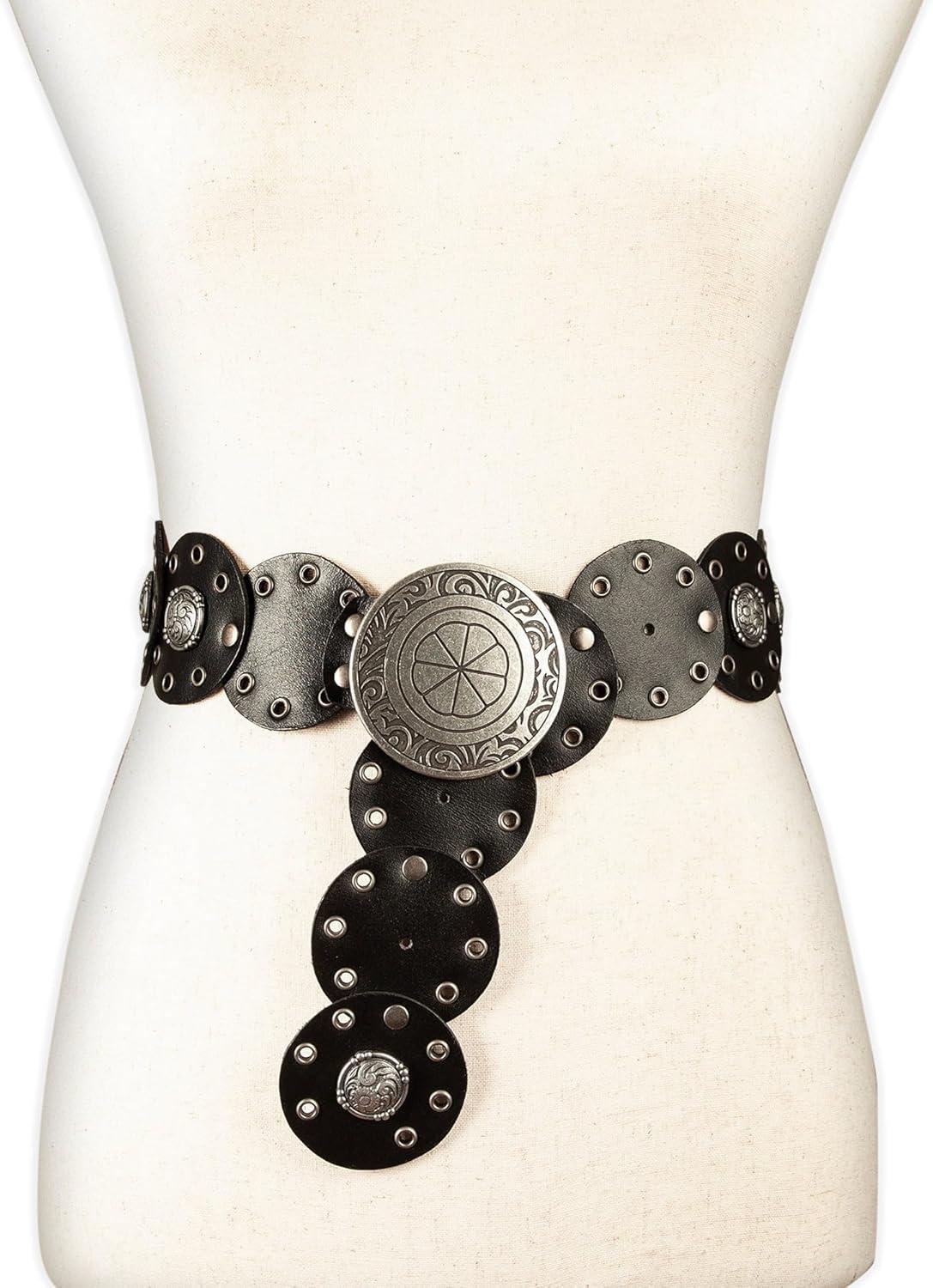 Lucky Brand Women’s Western-Inspired Leather Belt | Classic | American Heritage | Casual | Vintage | Cowboy(Grommet Concho – Black)