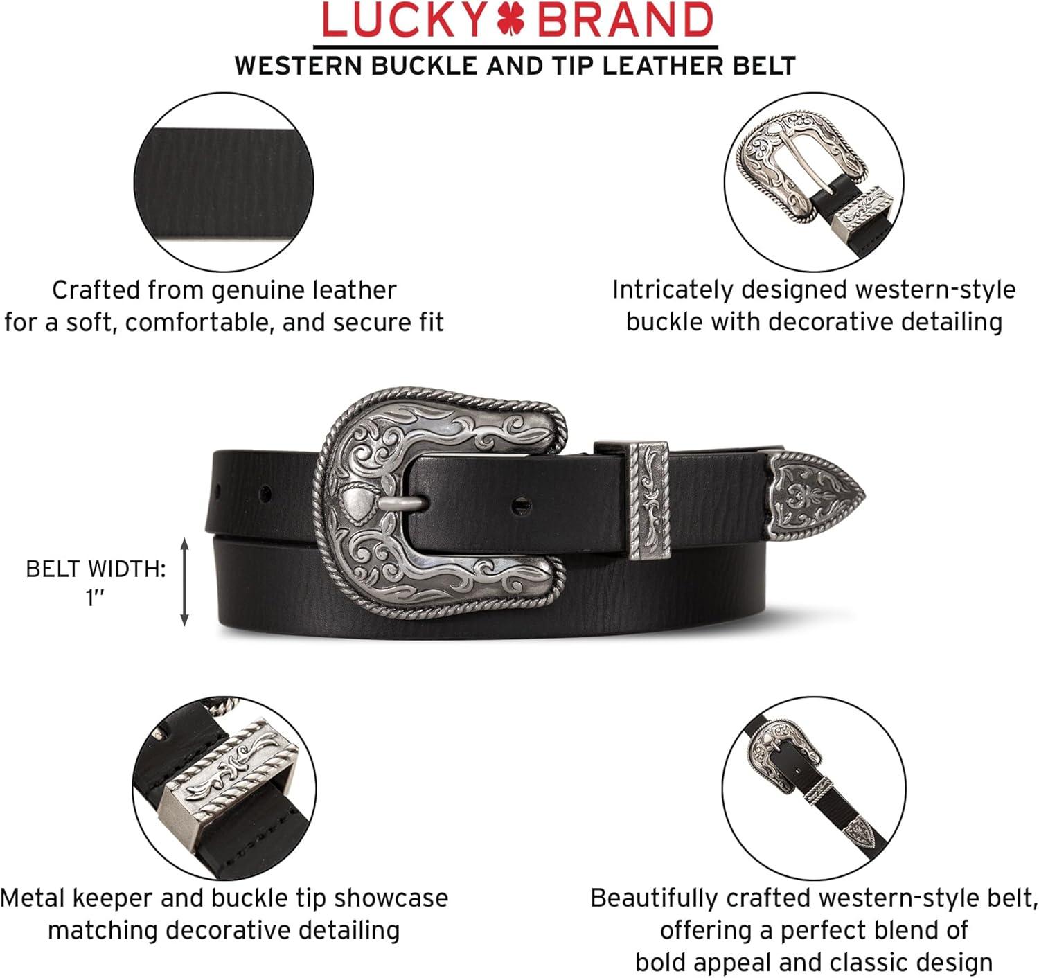 Lucky Brand Women’s Western-Inspired Leather Belt | Classic | American Heritage | Casual | Vintage | Cowboy(Western Buckle and Tip – Black)