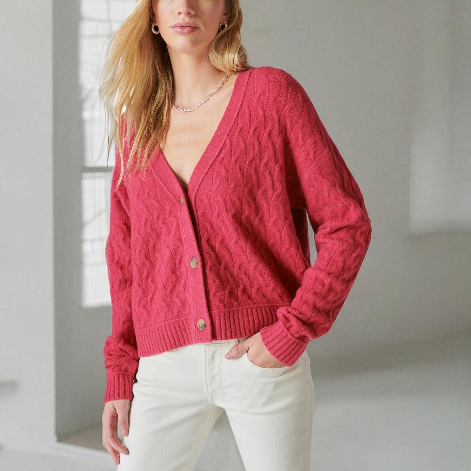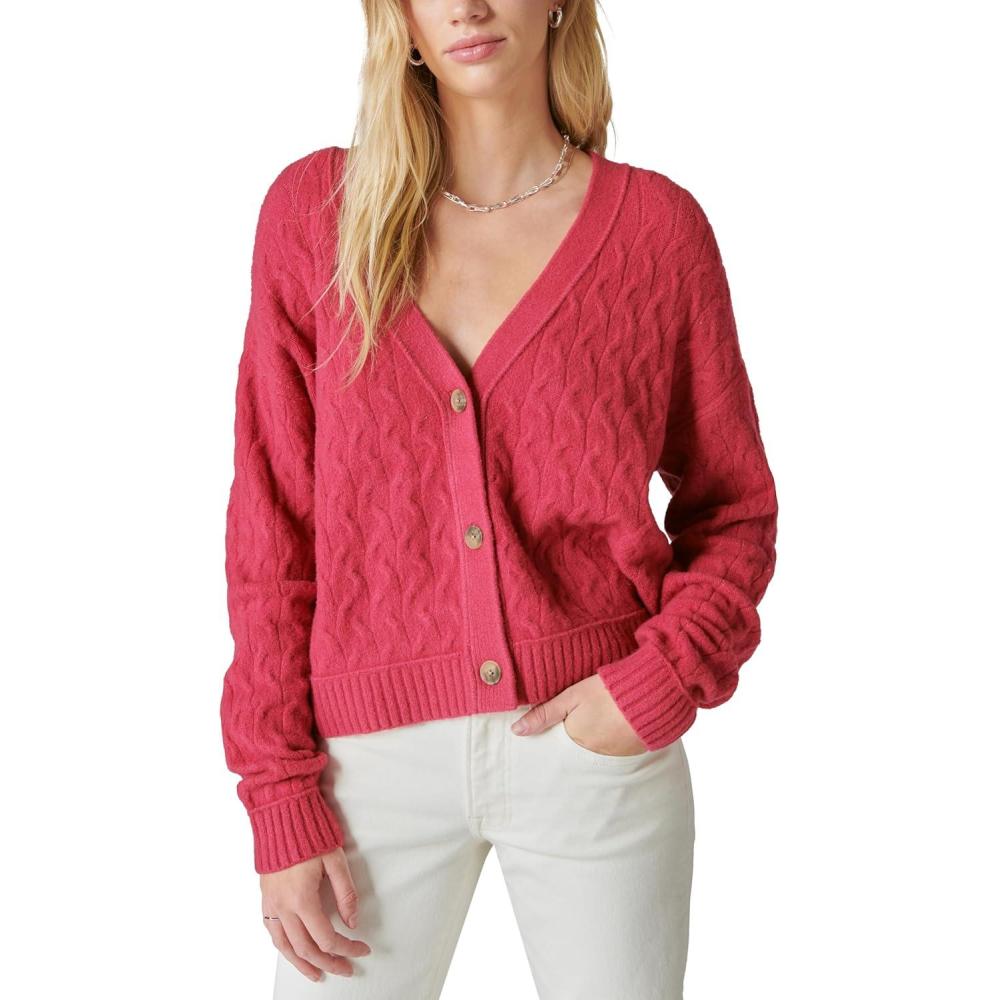 Lucky Brand Womens Women’s Cozy Cable Stitch Cardigan(Red Bud)