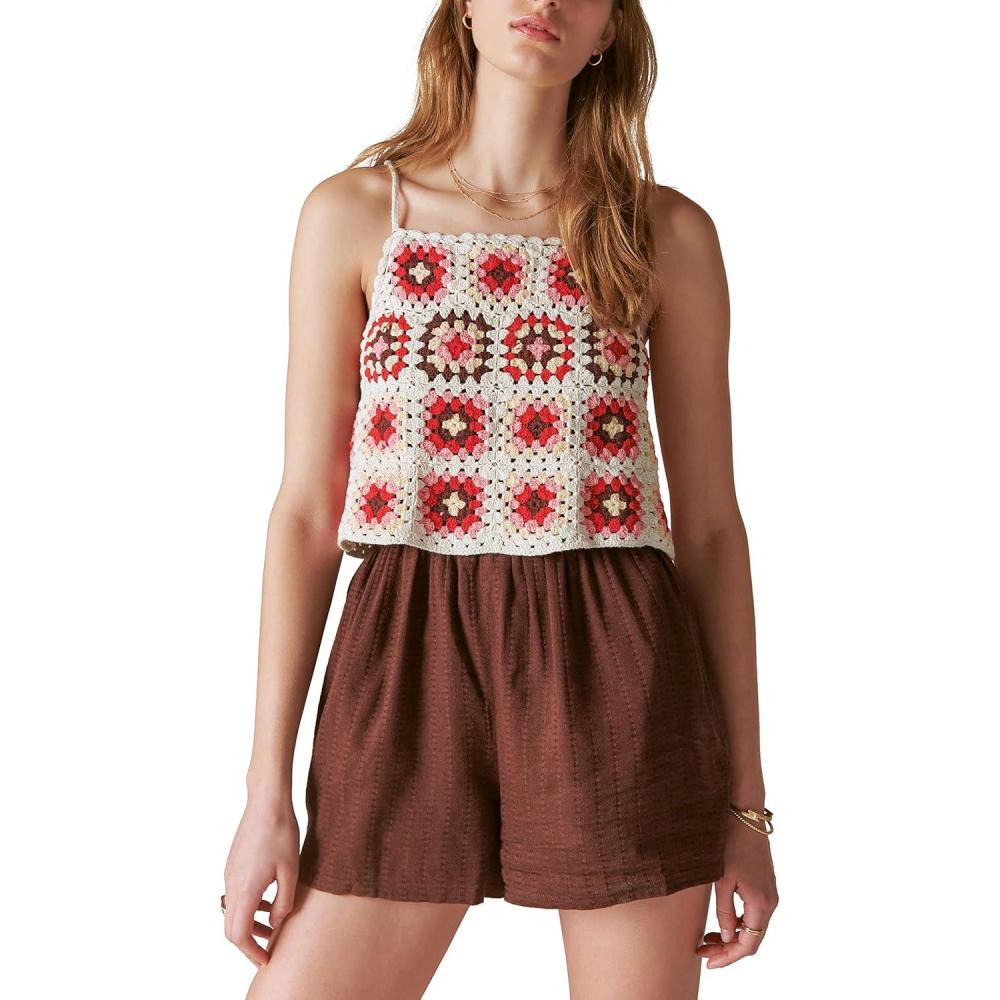 Lucky Brand Womens Women’s Crochet Romper(Pink Granny Square)