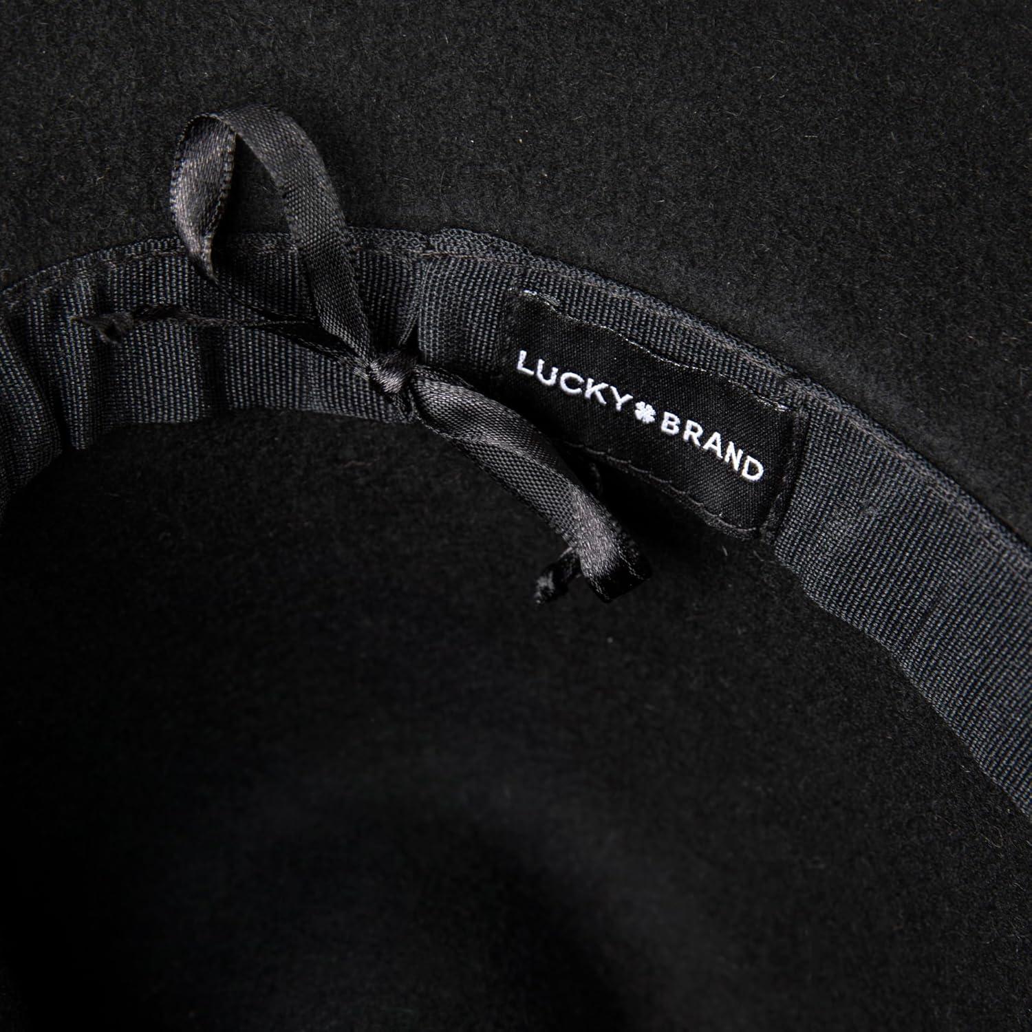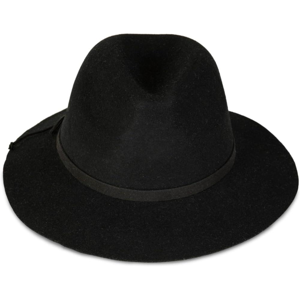 Lucky Brand Womens Wool Fedora Wide Brim Adjustable Hat with Faux Suede Tie (One Size Fits Most)(Black)