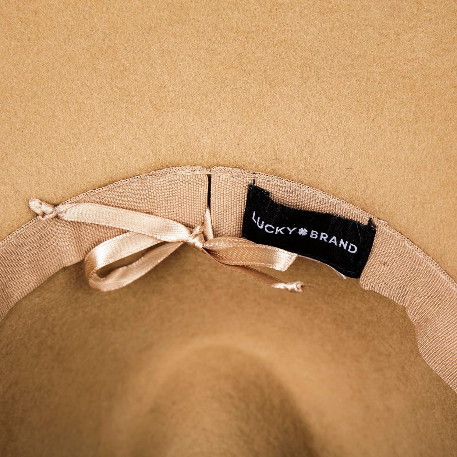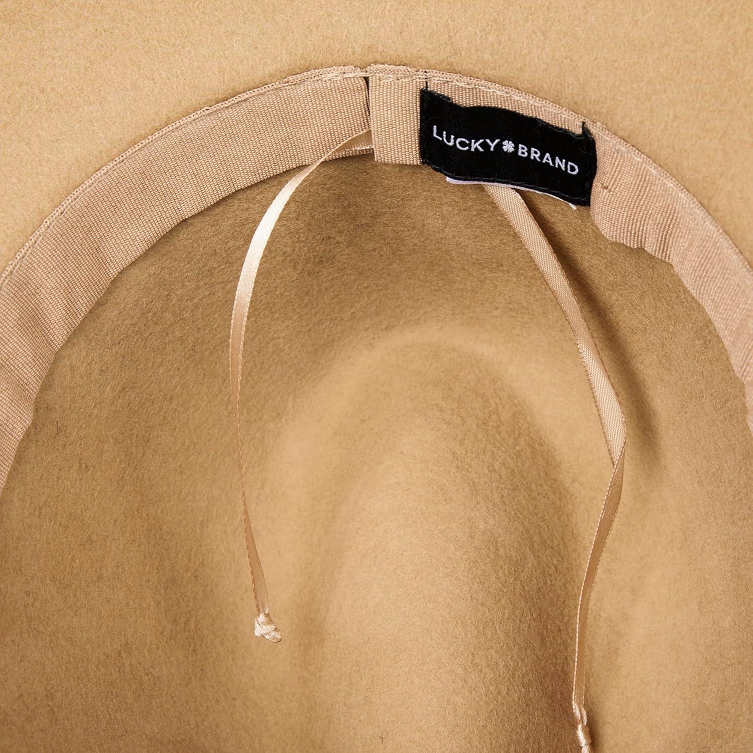 Lucky Brand Womens Wool Fedora Wide Brim Adjustable Hat with Faux Suede Tie (One Size Fits Most)(Khaki)