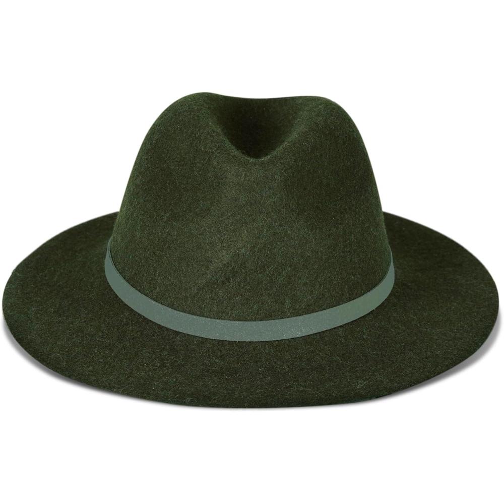Lucky Brand Womens Wool Fedora Wide Brim Adjustable Hat with Faux Suede Tie (One Size Fits Most)(Olive)