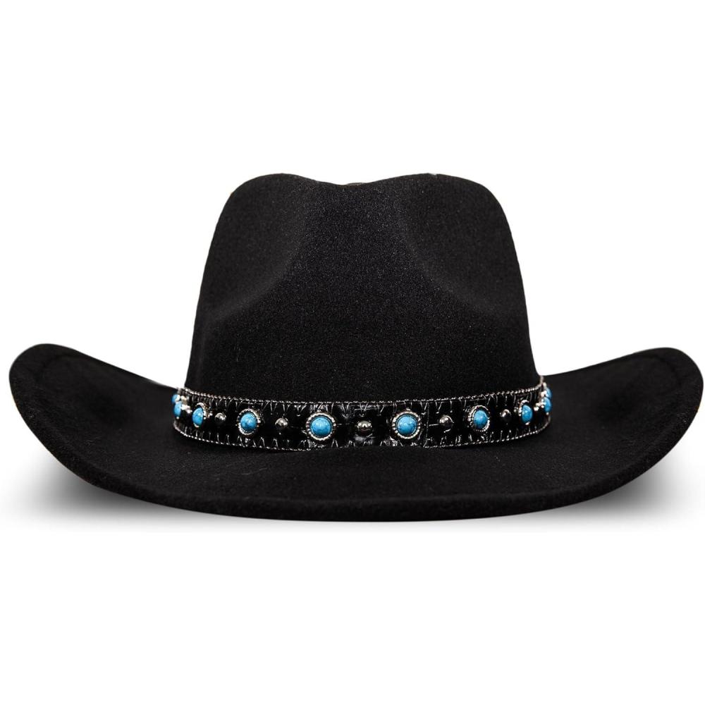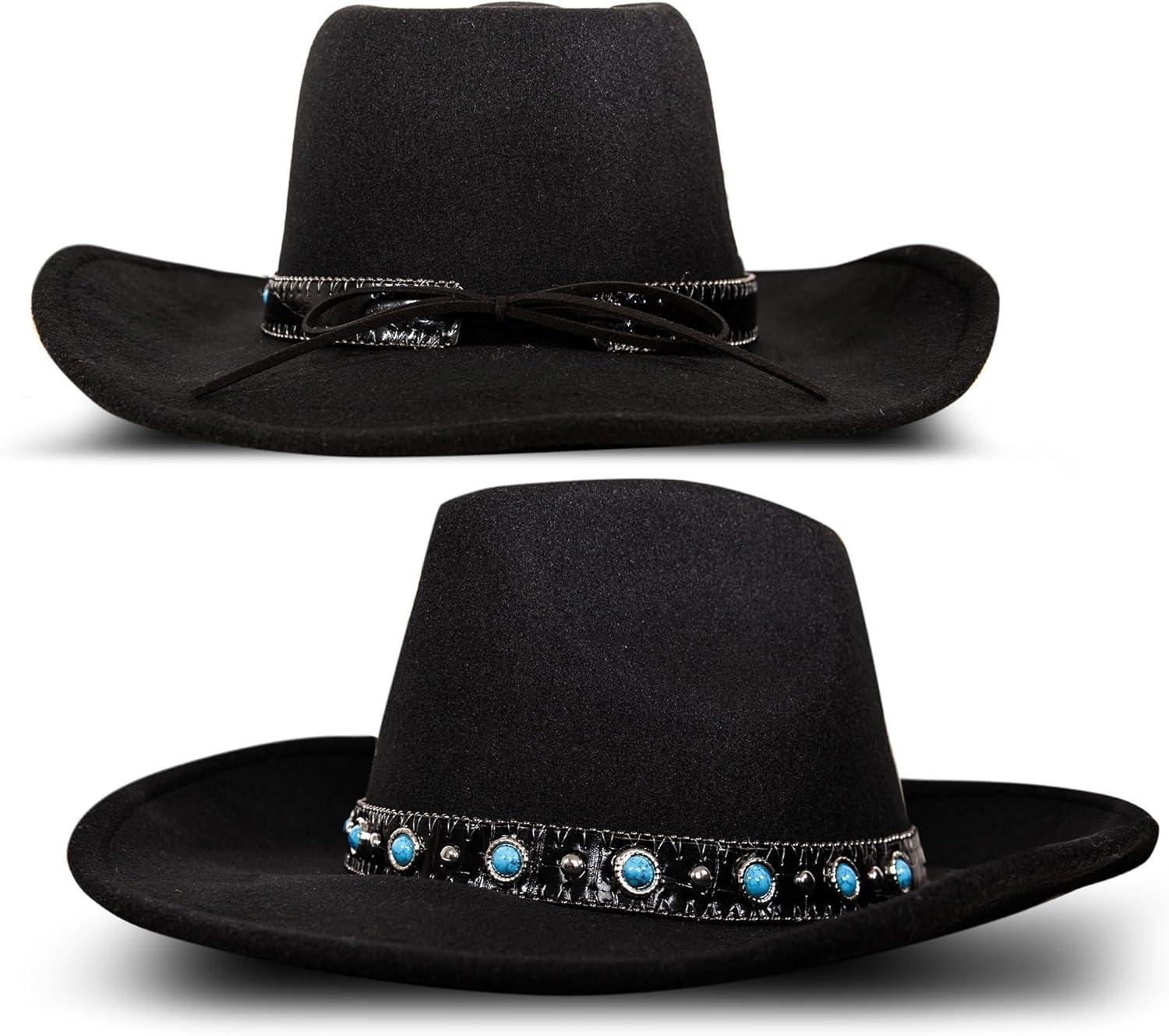 Lucky Brand Womens Wool Felt Fabric Wide Brim Ranger Boater Adjustable Hat (One Size Fits Most)(Cowboy W/ Turquosie Band – Black)