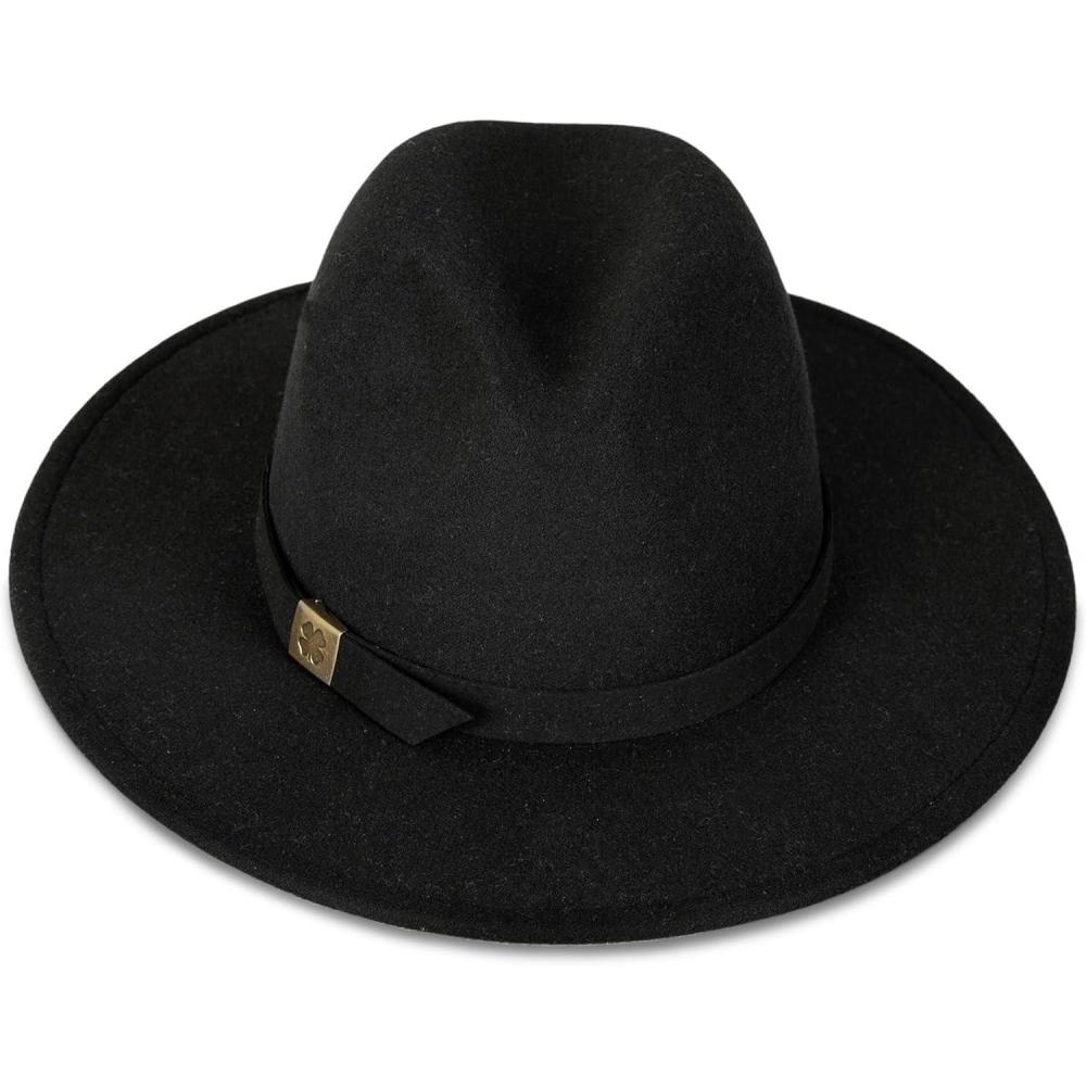 Lucky Brand Womens Wool Felt Fabric Wide Brim Ranger Boater Adjustable Hat (One Size Fits Most)(Ranger W/ Clip – Black)