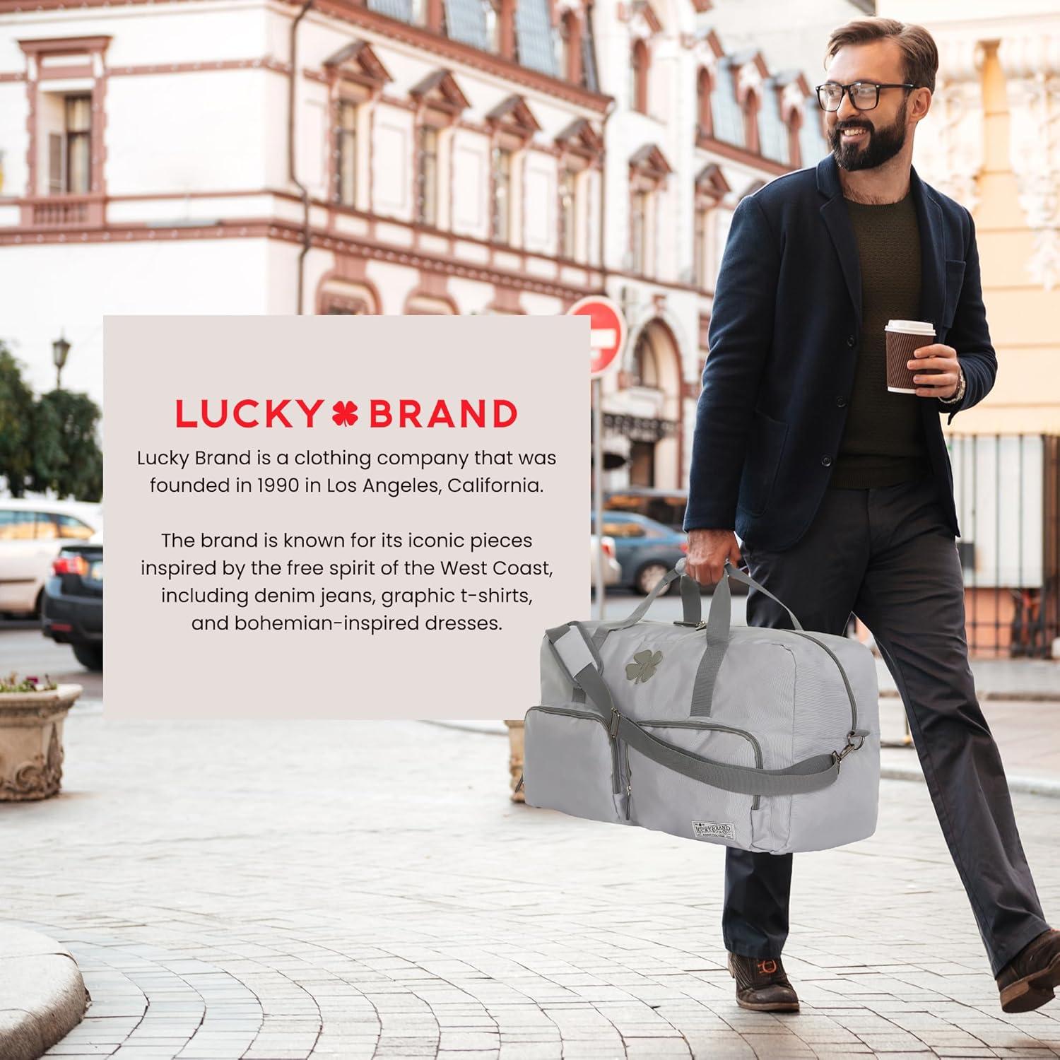 Stand Out Look: This duffle bag is available in an array of fashionable colors like camouflage, crimson, olive, navy, and black. It also features a rubber Lucky clover logo patch to add to its unique style.