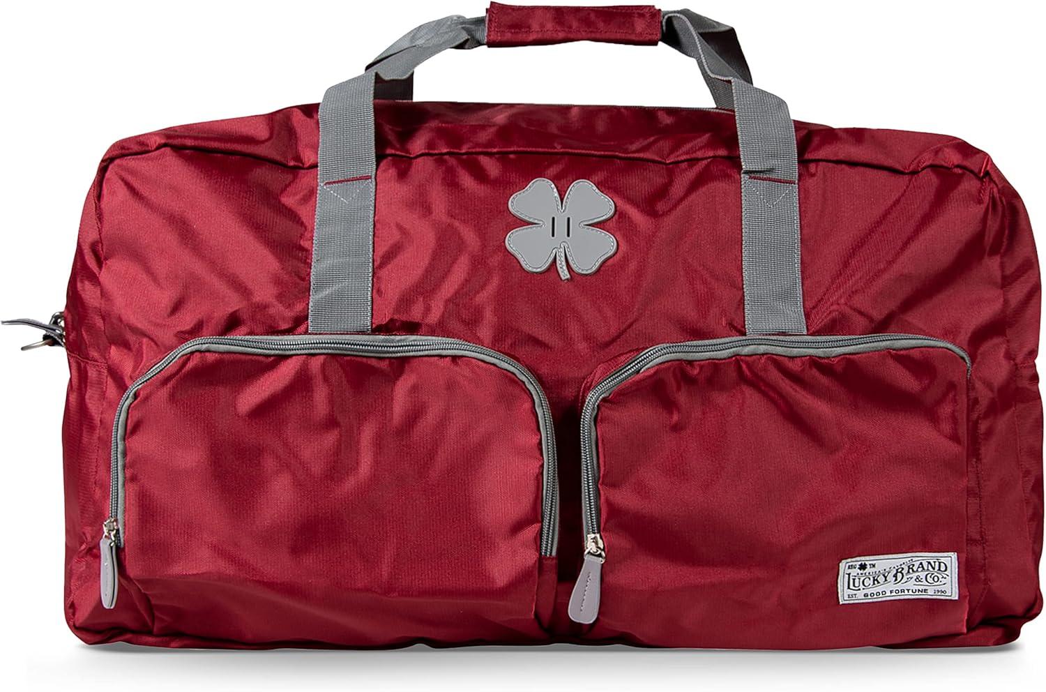 Stand Out Look: This duffle bag is available in an array of fashionable colors like camouflage, crimson, olive, navy, and black. It also features a rubber Lucky clover logo patch to add to its unique style.