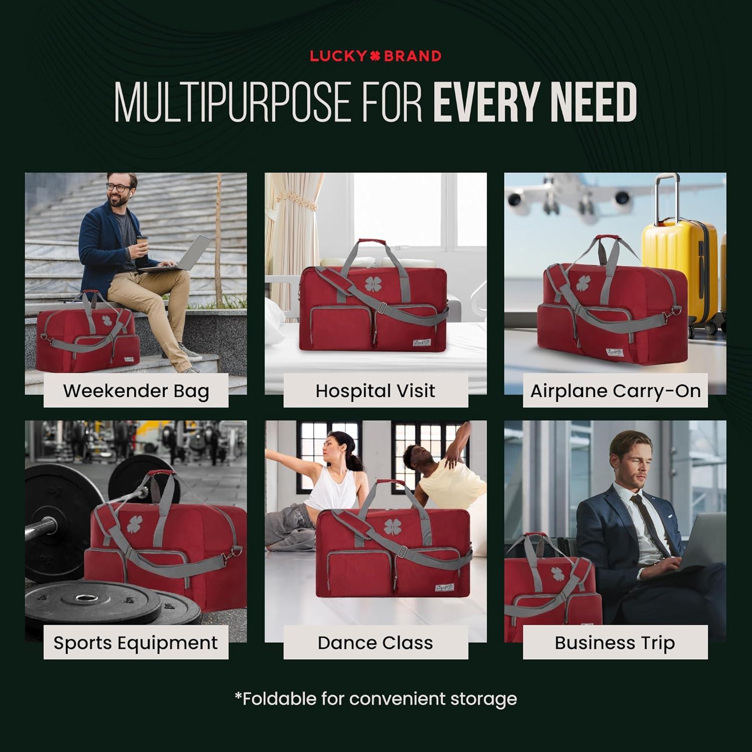 Multipurpose Duffle Bags: The Lucky personal item Duffel Bag isn’t just a duffle bag for travel, it also can be used as a gym bag for women or a gym bag for men. As well as a camping bag, football bag, hockey bag, workout bag, overnight bag, hospital bag, and weekender bag.
